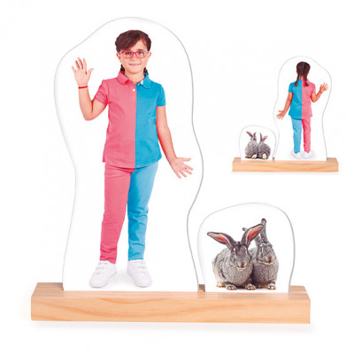 Na karticama su prikazane osobe sprijeda i straga, što dodatno potiče razumijevanje perspektive. Djeca postavljaju predmete s lijeve ili desne strane lika, prate modele ili rješavaju zadatke samostalno, čime razvijaju logičko razmišljanje, pažnju i koncentraciju 🎯.