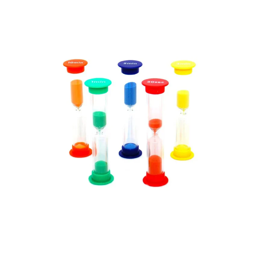 U setu se nalazi 5 satova koji označavaju određen period vremena: 30 sekundi, 1 minuta, 3 minute, 5 minuta i 10 minuta.