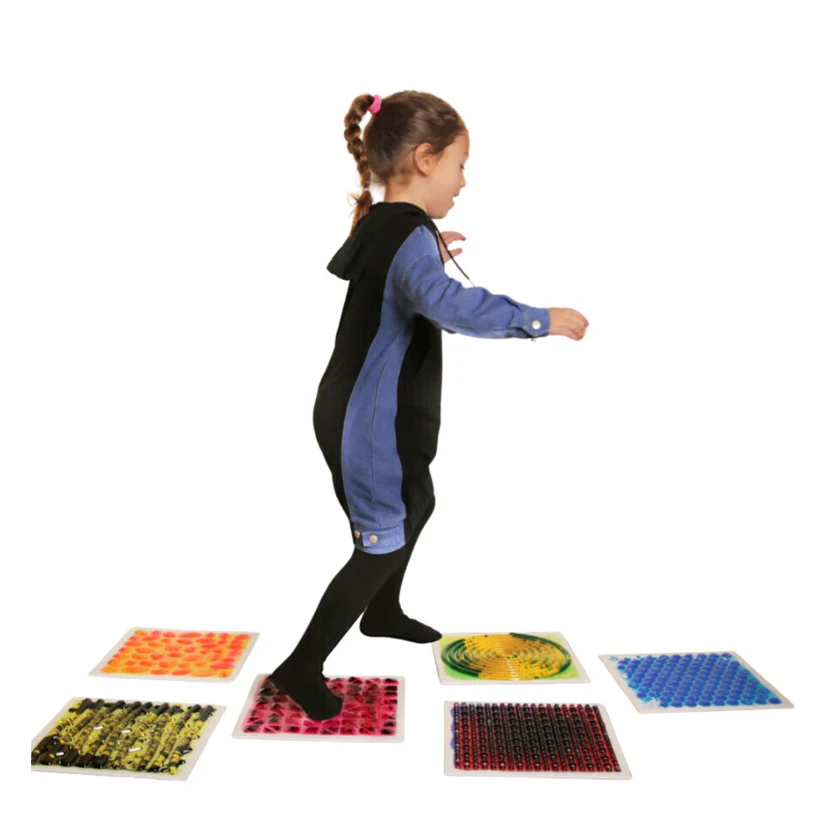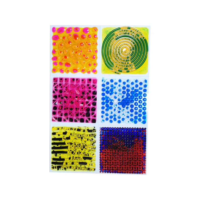Ispunjene su šarenim netoksičnim tekućinama koje se kreću unutar pločica tijekom pritiska stopalima ili rukama. Površina svake pločice je taktilna, a dno je protuklizno. Pločice su kompletno zabrtvljene i sigurne za korištenje. Mogu se koristiti na podu ili na stolu, odnosno bilo kojoj ravnoj površini.